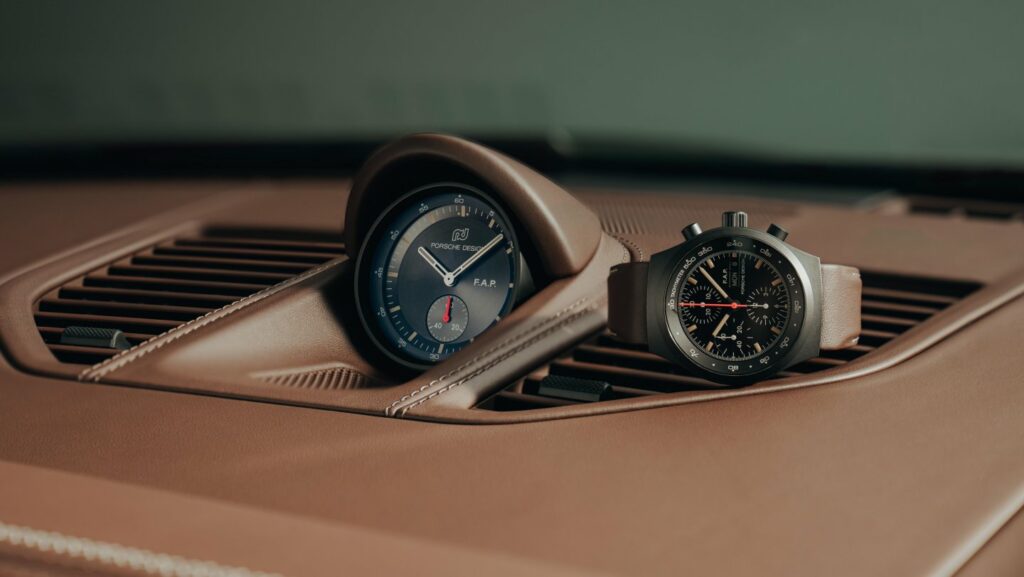 Au lieu du bracelet en titane recouvert de noir, les acheteurs peuvent également porter la montre avec un bracelet en cuir, fourni avec la montre. Le cuir et le fil des coutures décoratives correspondent aux matériaux utilisés dans l’intérieur de la voiture de sport. Grâce au système de changement rapide, les bracelets peuvent être remplacés facilement et sans outils. Comme toutes les montres Porsche Design, le chronographe est certifié COSC, ce qui garantit une précision maximale. Il est fabriqué à la main dans l’usine horlogère Porsche de Grenchen, en Suisse.