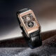 Hybris Artistica : les platines et ponts décoratifs, en or rose (18 carats, 750/1000), sont découpés au laser pour créer 200 creux, qui sont ensuite laqués par un seul artisan par montre – un art que seuls trois artisans de la Manufacture Jaeger LeCoultre maîtrisent.