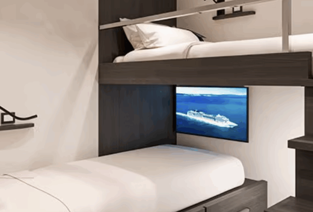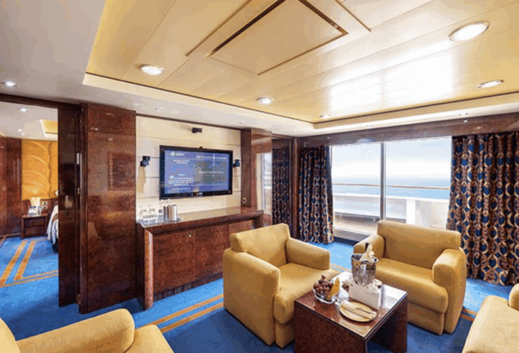 - NOUVEAU à bord ! 63 suites élégantes* réparties en 5 catégories, pour répondre aux besoins de tous les voyageurs. Certaines Suites Balcon vue mer sont communicantes pour le confort des familles.