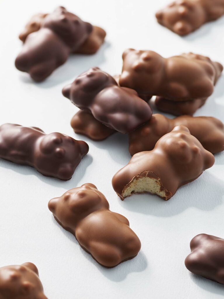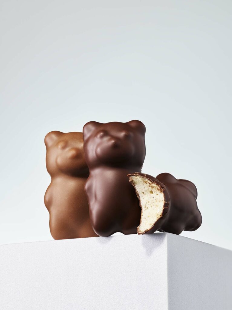 Oursons en guimauve, chocolat noir ou au lait d’une tendresse incomparable fondent délicatement en bouche en libérant toute leur gourmandise après une coque croquante de chocolat noir ou chocolat au lait.